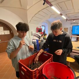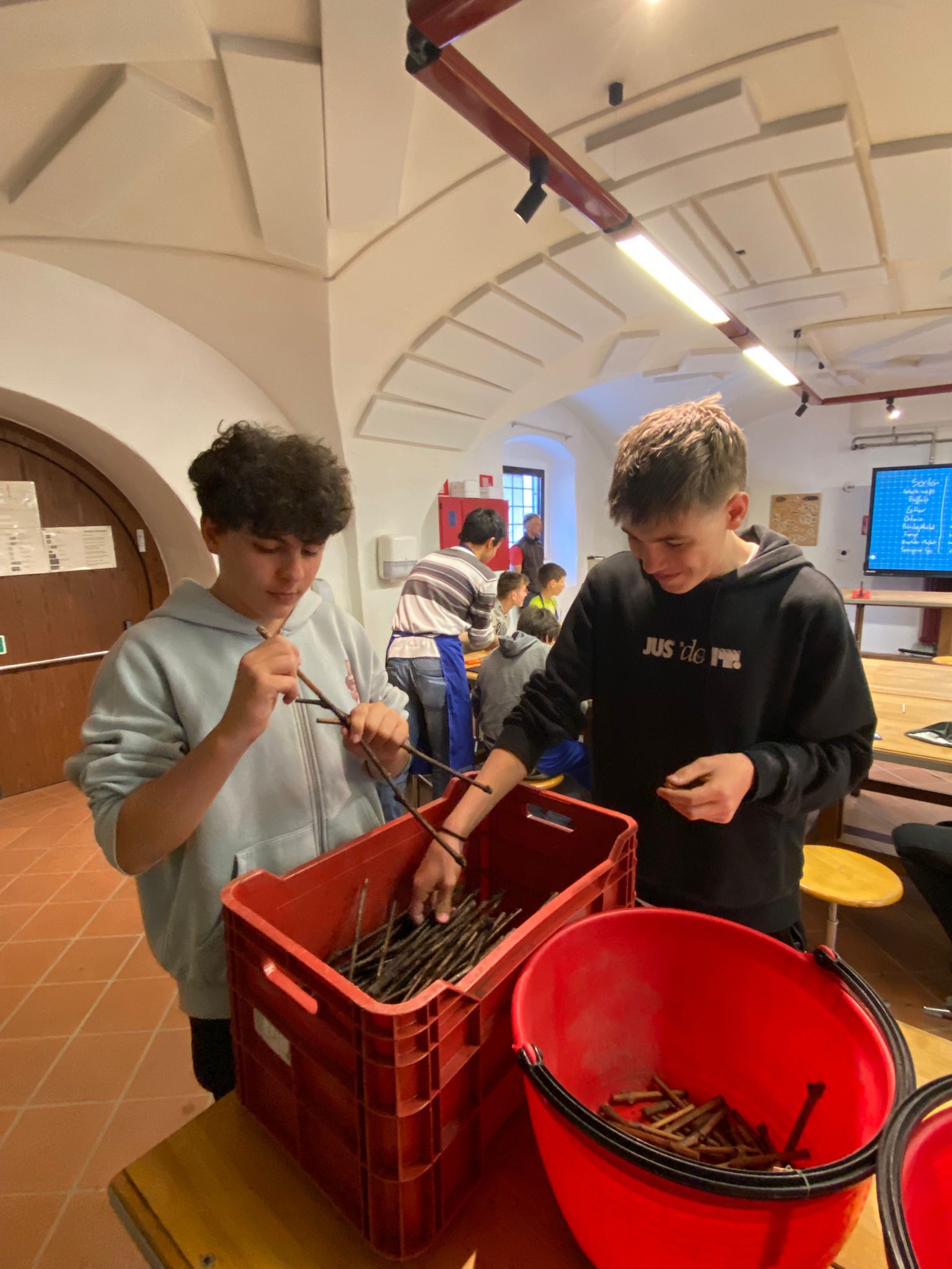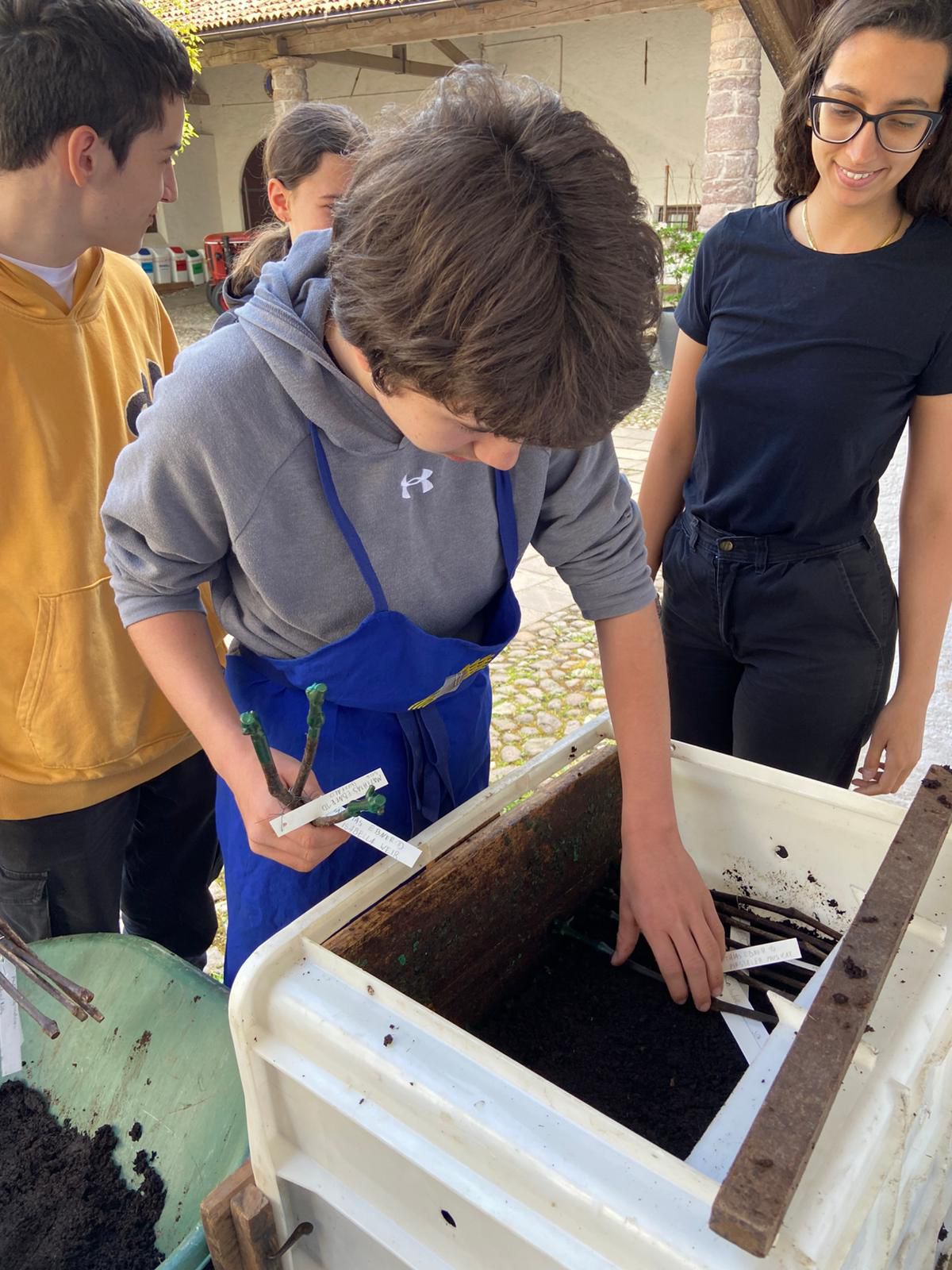 Die veredelten Reben kommen nun in die Vortreibkiste und dann in die Rebschule, bevor sie im nächsten Schuljahr an die Schüler:innen wieder ausgeteilt werden! Wir sind gespannt.