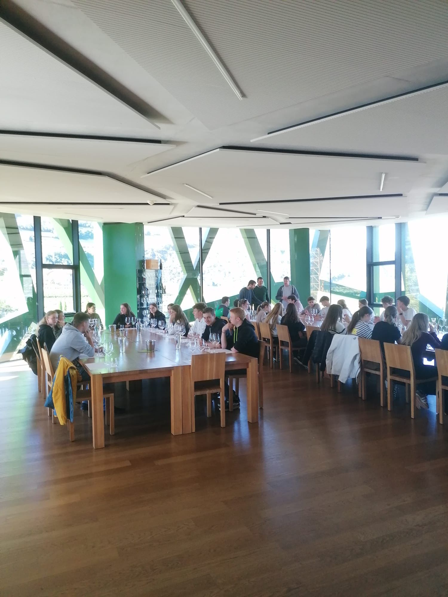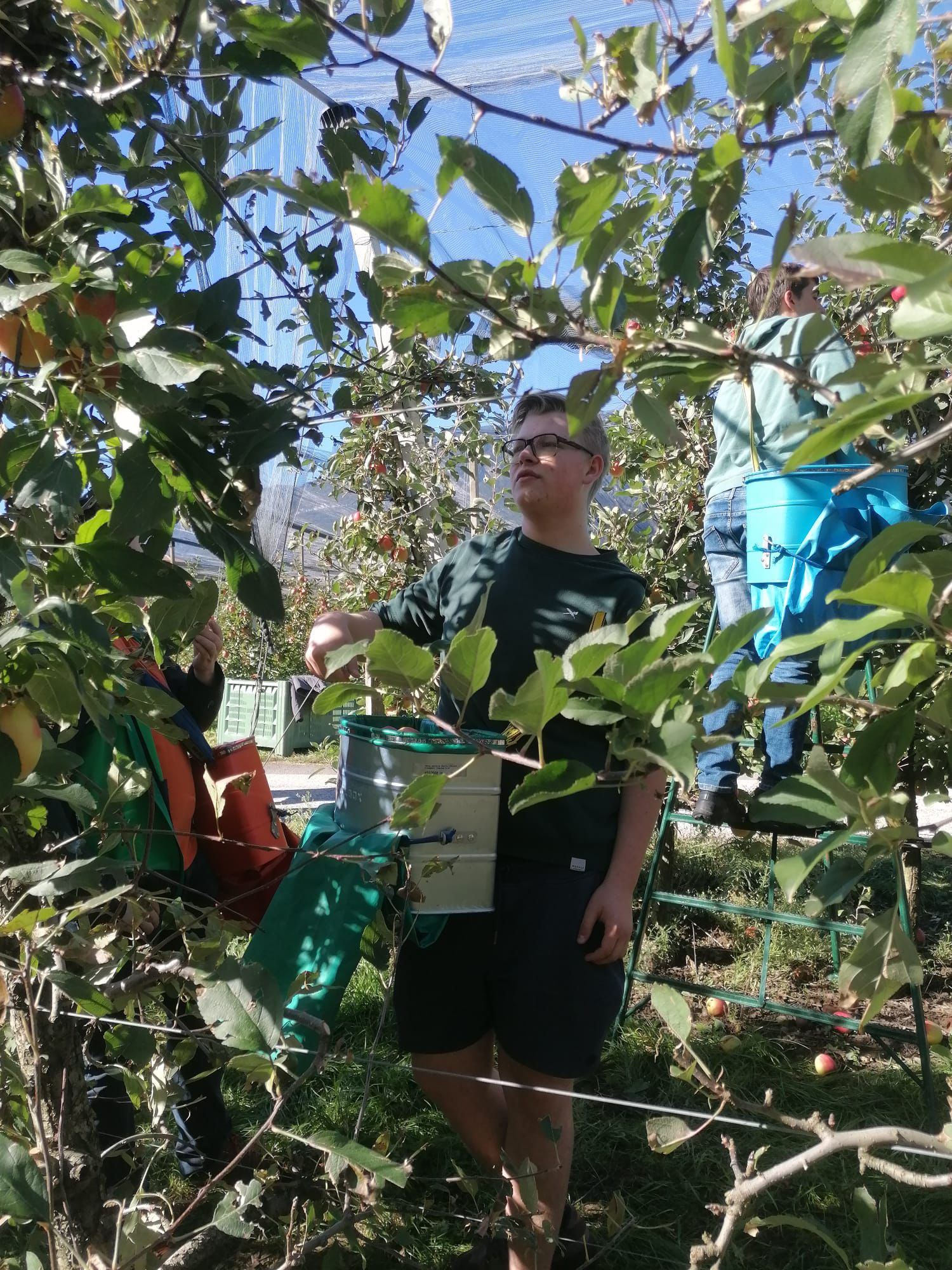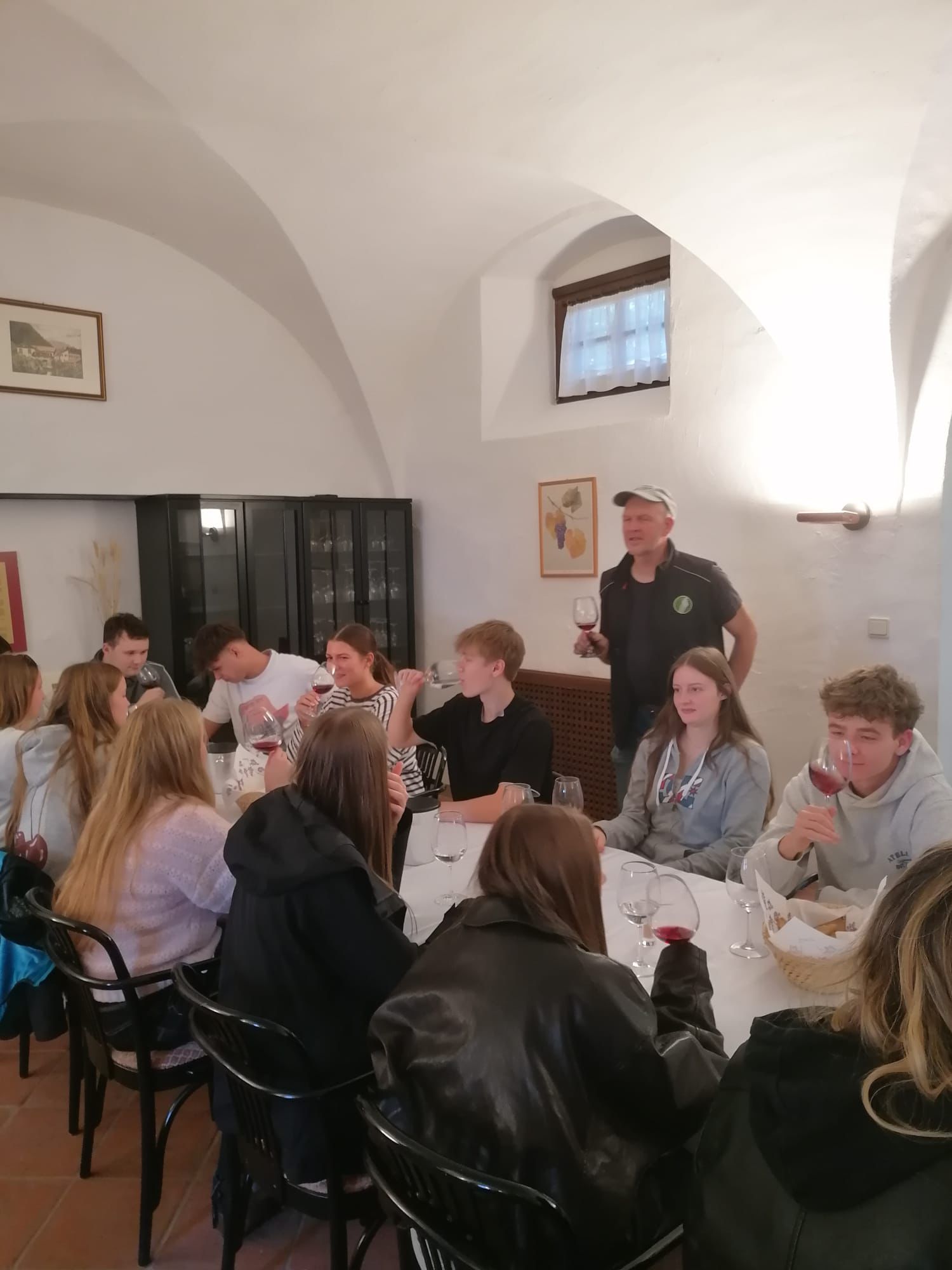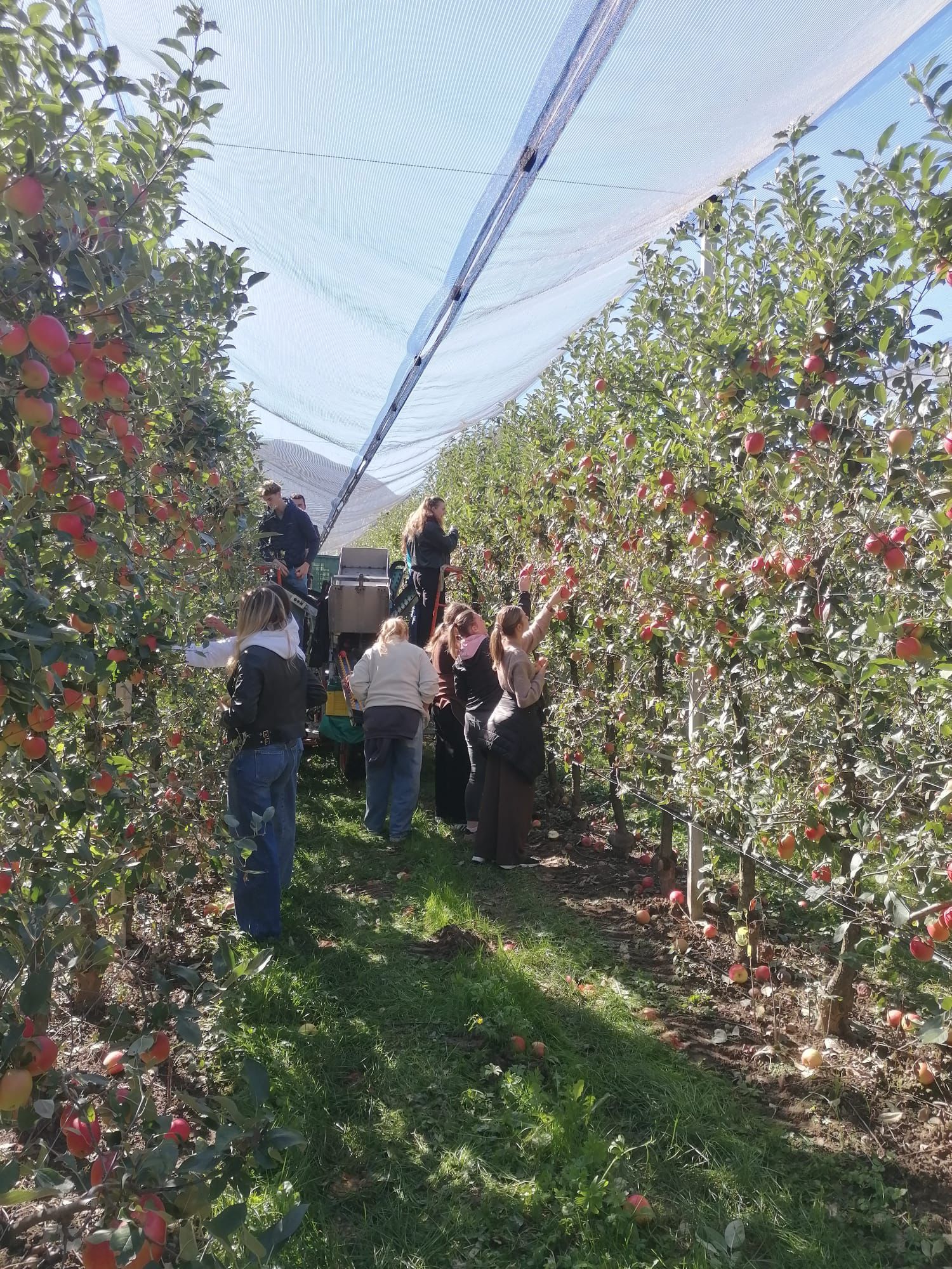 In Auer stand eine ausführliche Erkundung des Schulgeländes sowie der Unterrichtsgegenstände auf dem Programm. Abgerundet wurde der erste Tag mit einer Verkostung typischer Südtiroler Weine und Käsespezialitäten. Am zweiten Tag besichtigten die Gäste die Obstgenossenschaft Grufrut in Branzoll, bevor sie bei der Obsternte am Hof mithelfen durften. Die Schüler:innen aus Tirol lernten dadurch den Weg eines Apfels vom Baum bis zur fertigen Verpackung im Supermarkt oder der Gastroküche kennen. Am Nachmittag besichtigten sie zusammen mit der Klasse 4B LU die Kellereigenossenschaft Tramin. Die Tourismusschüler:innen lernten somit einen weiteren wichtigen Landwirtschaftszweig in Südtirol kennen.