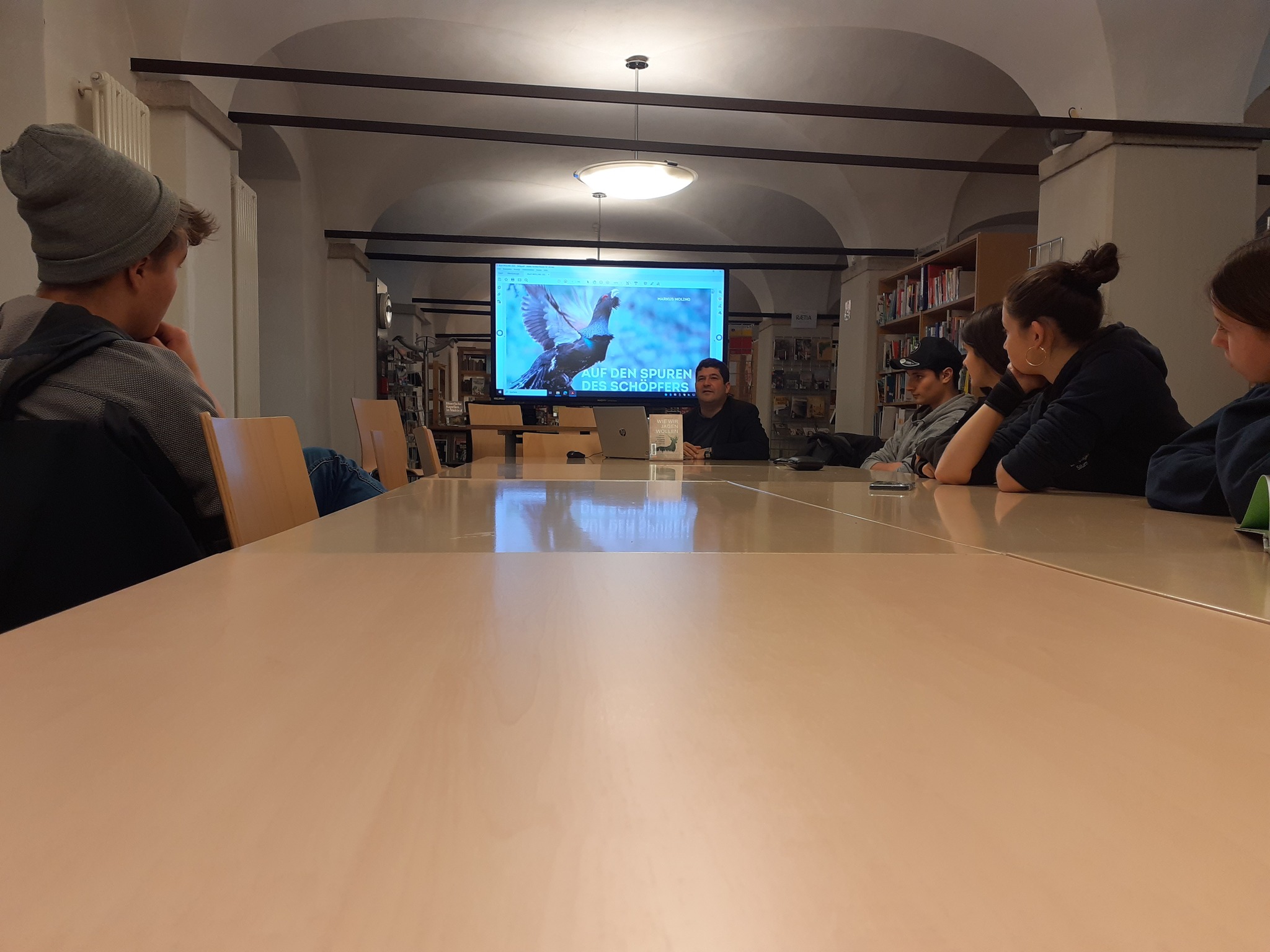 Der Theologe Prof. Dr. Markus Moling hat diese Spuren den jagdinteressierten Schüler*innen in unserer Schulbibliothek in seiner neuesten Erscheinung präsentiert. Prof. Moling ist neben seinem Lehrauftrag auch begeisterter Wildbeobachter und Hobbyornithologe. Er arbeitet schon seit einigen Jahren bei Erhebungen und Zählungen von Seiten der Landesverwaltung mit und dokumentiert die Beobachtungen und Sichtungen.