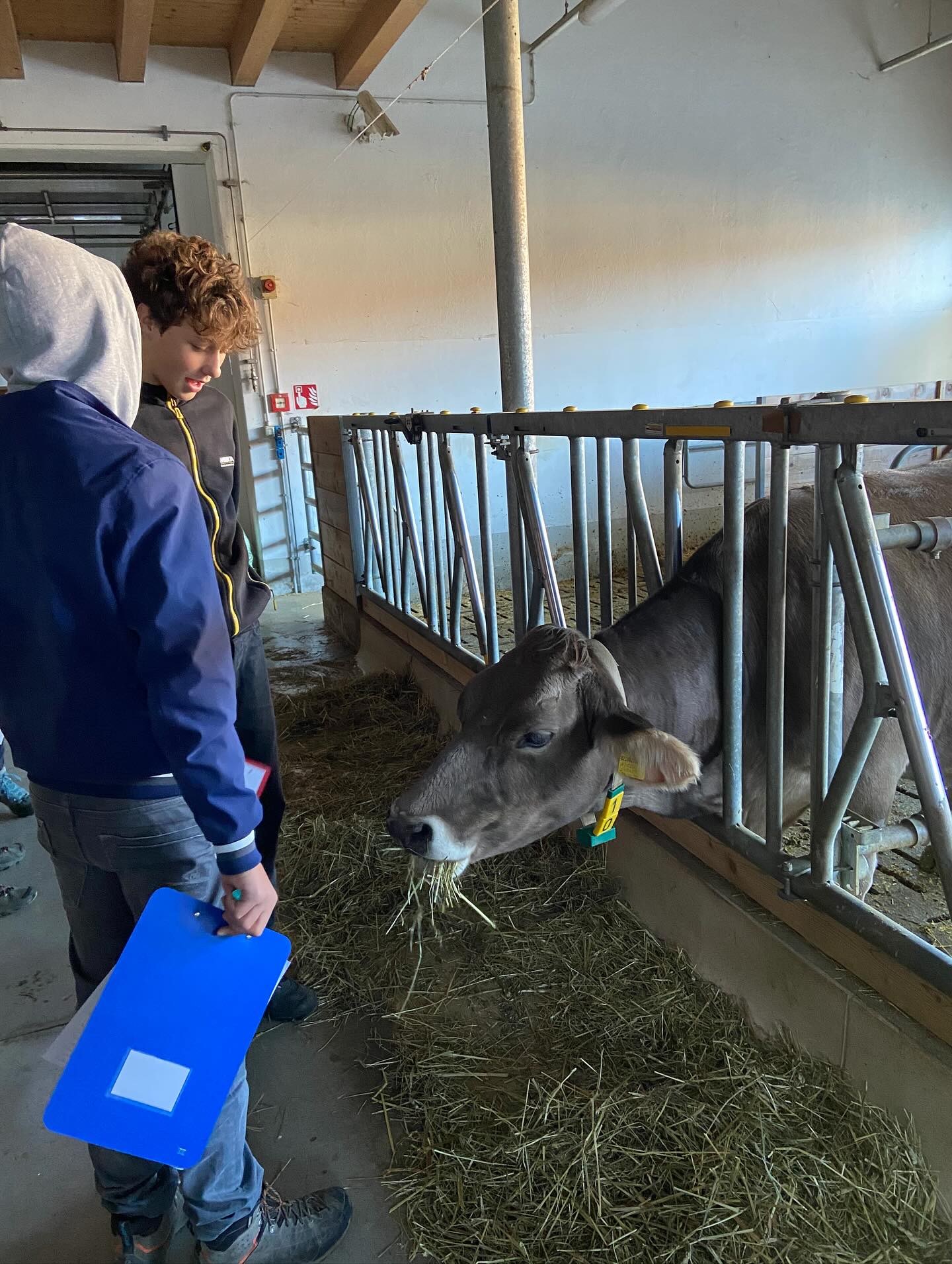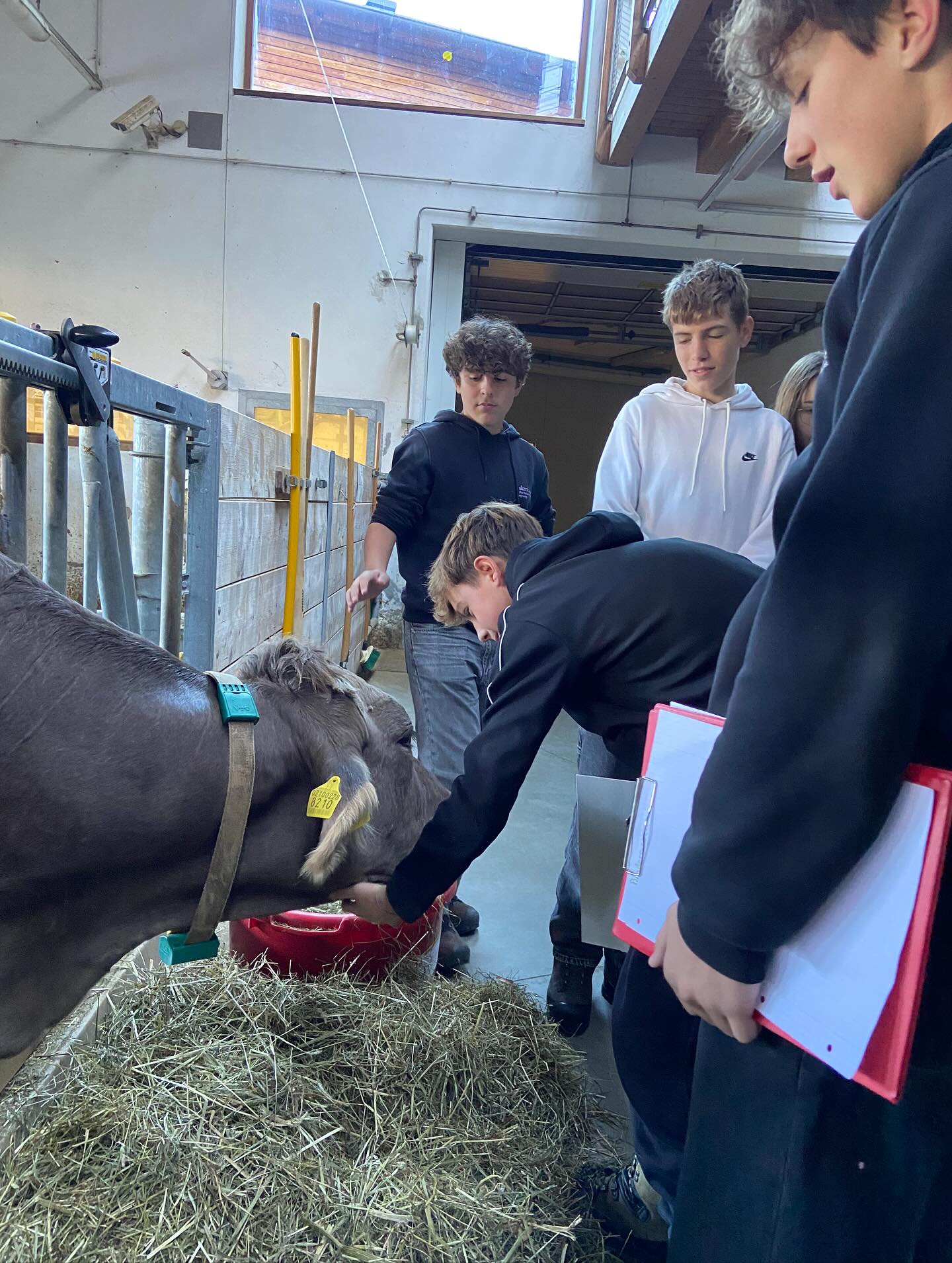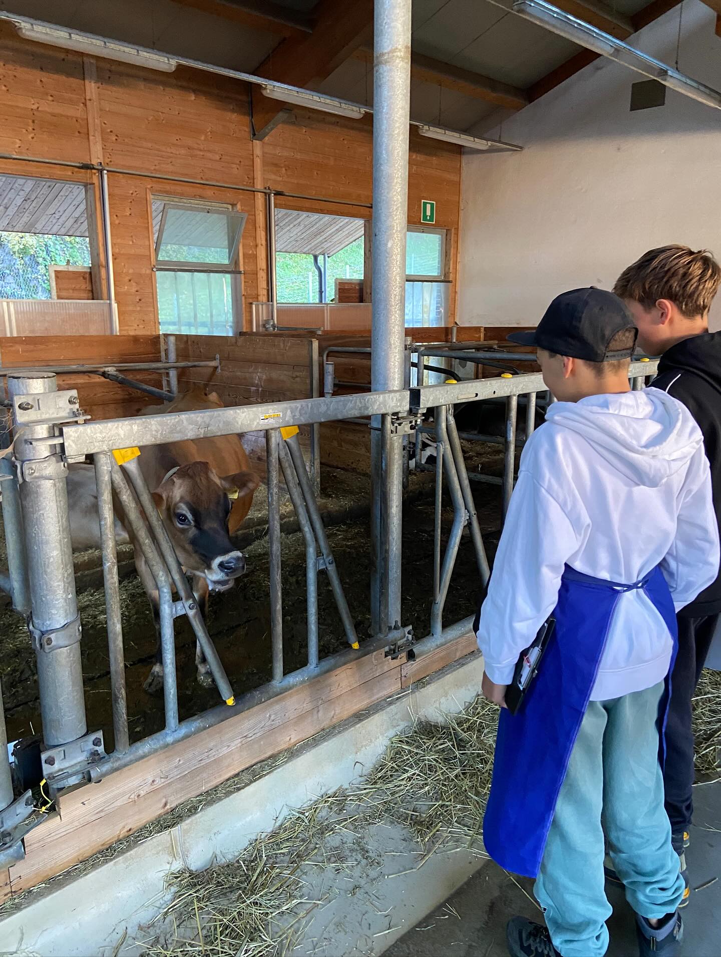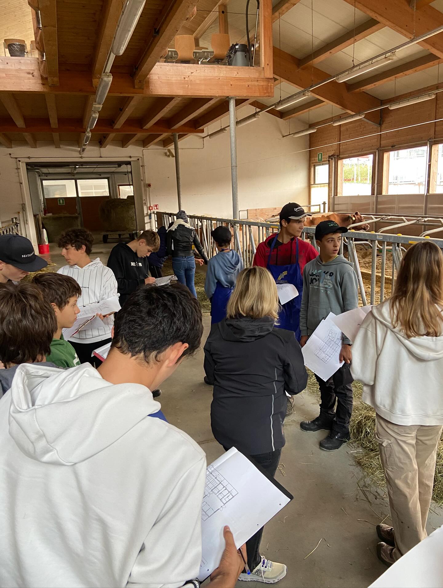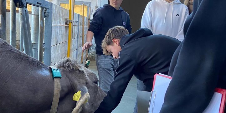 Im Fach Landwirtschaftliches Praktikum beschäftigen sich die 1. Klassen mit verschiedenen Stallbauweisen und erkunden dafür den Stall am Happacherhof. Dabei lernen die Schüler:innen die verschiedenen Funktionsbereiche des Stalls kennen und setzen sich mit verschiedenen Rinderrassen, deren Herkunft und typischen Merkmalen auseinander.