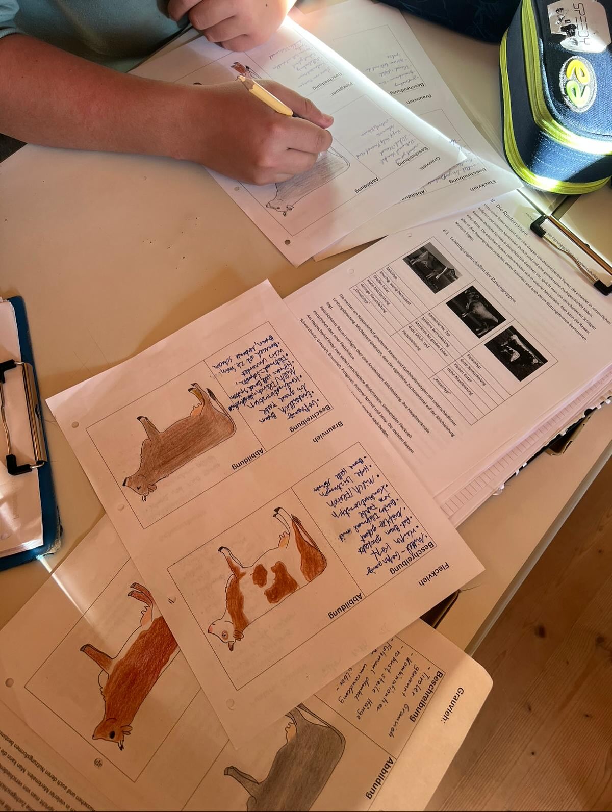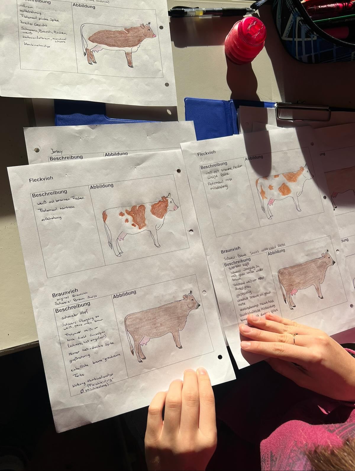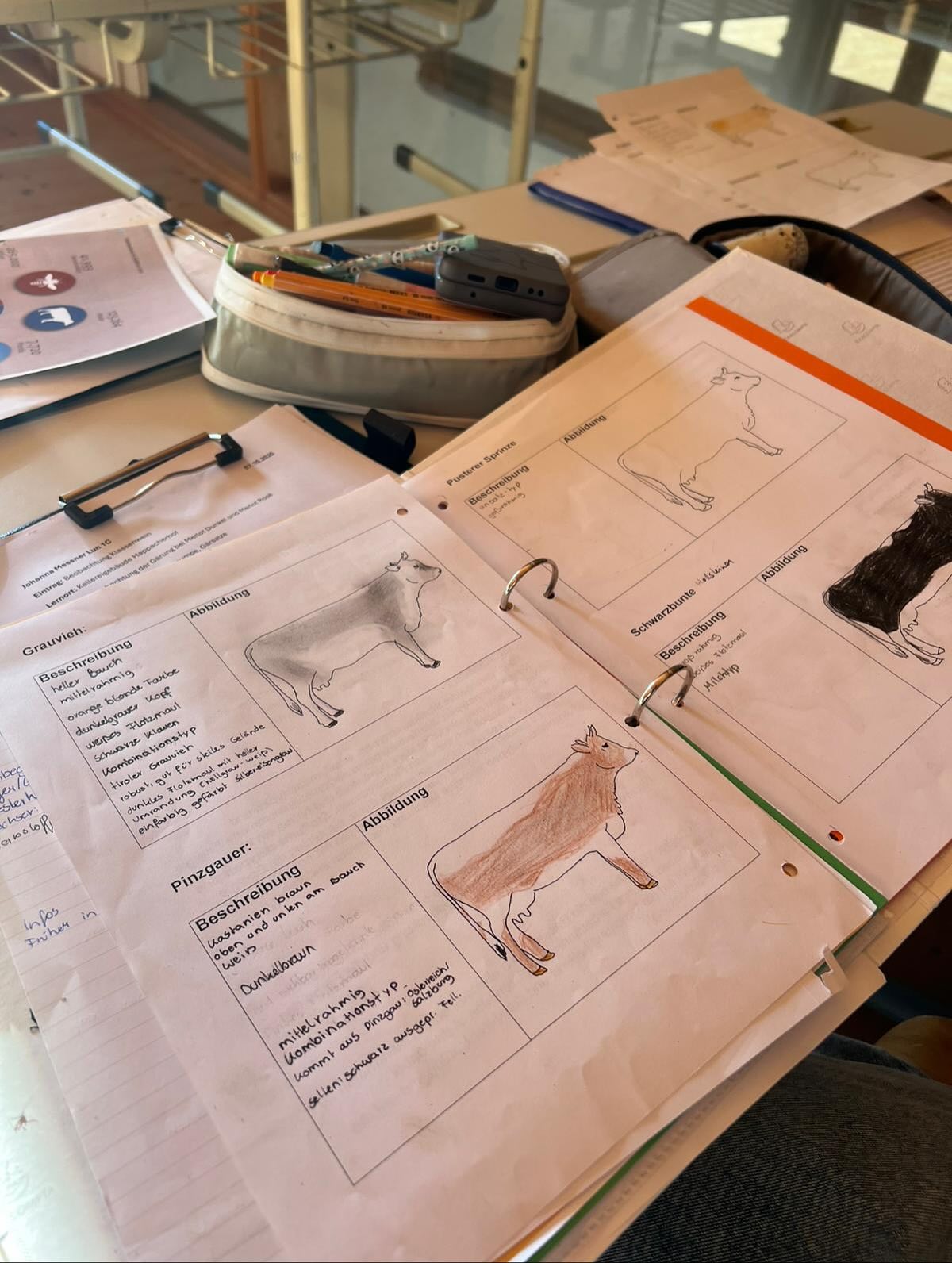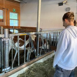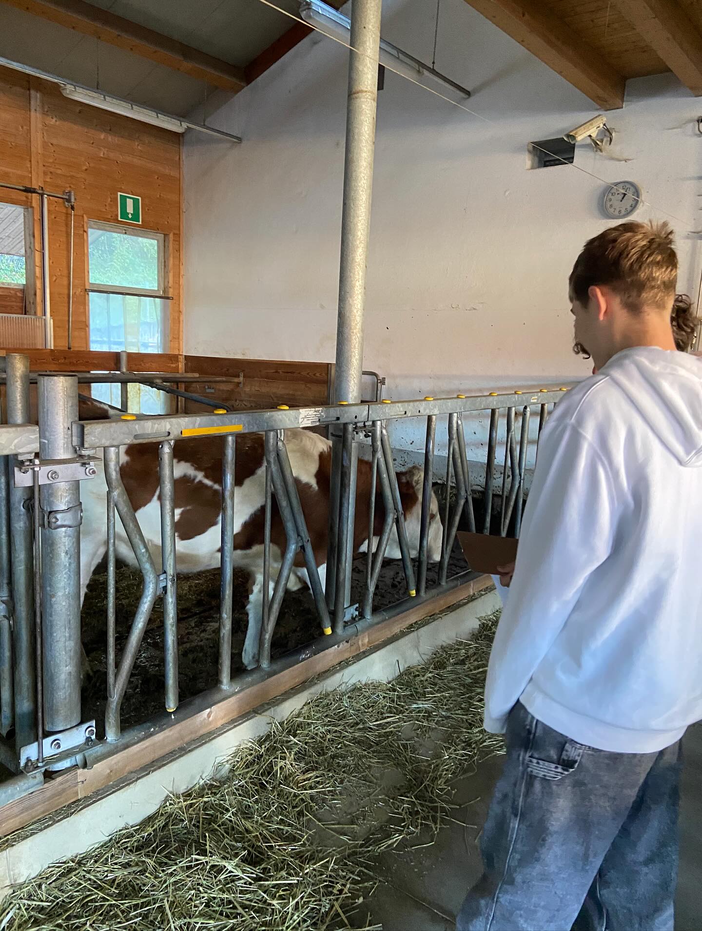 Im Fach Landwirtschaftliches Praktikum beschäftigen sich die 1. Klassen mit verschiedenen Stallbauweisen und erkunden dafür den Stall am Happacherhof. Dabei lernen die Schüler:innen die verschiedenen Funktionsbereiche des Stalls kennen und setzen sich mit verschiedenen Rinderrassen, deren Herkunft und typischen Merkmalen auseinander.