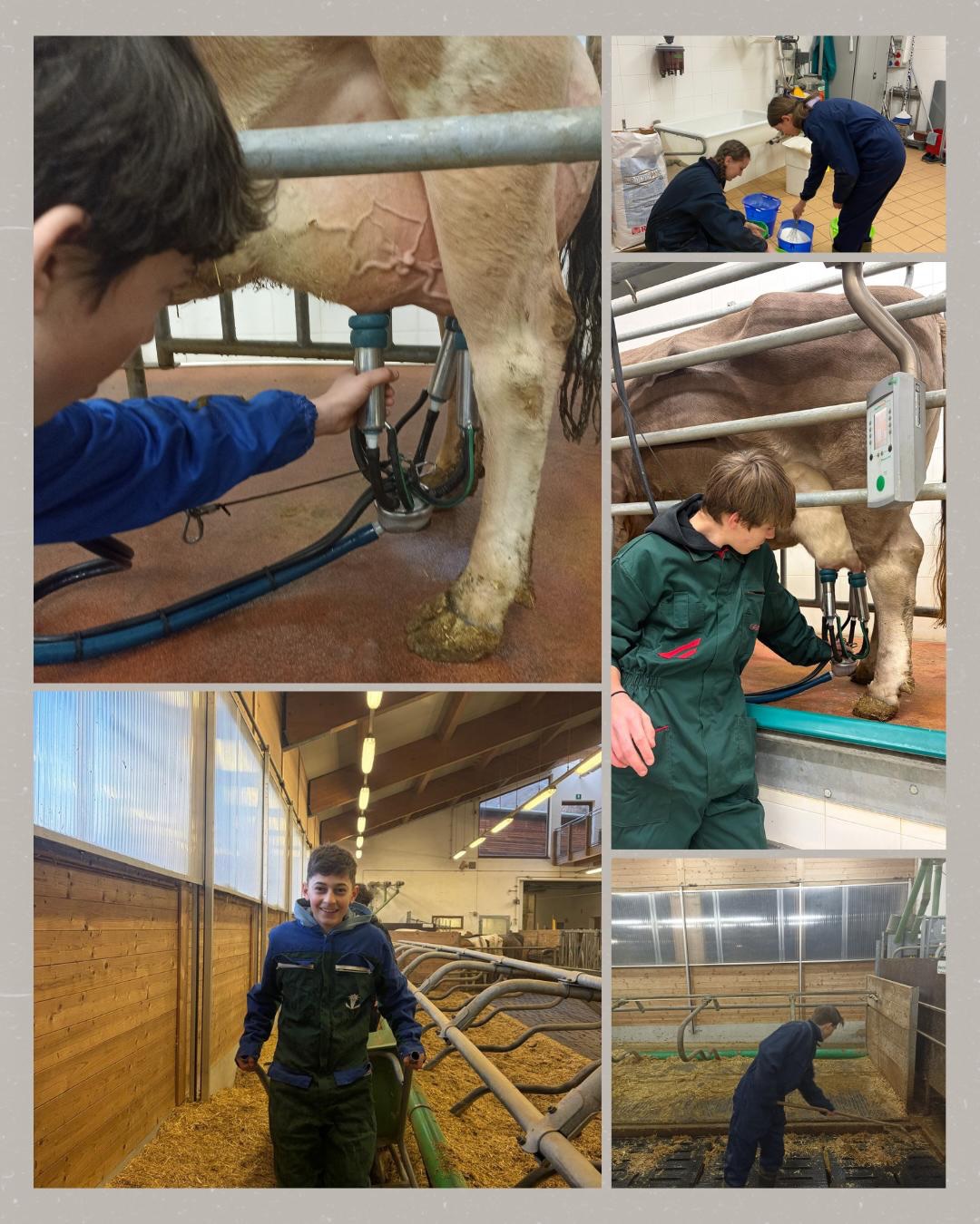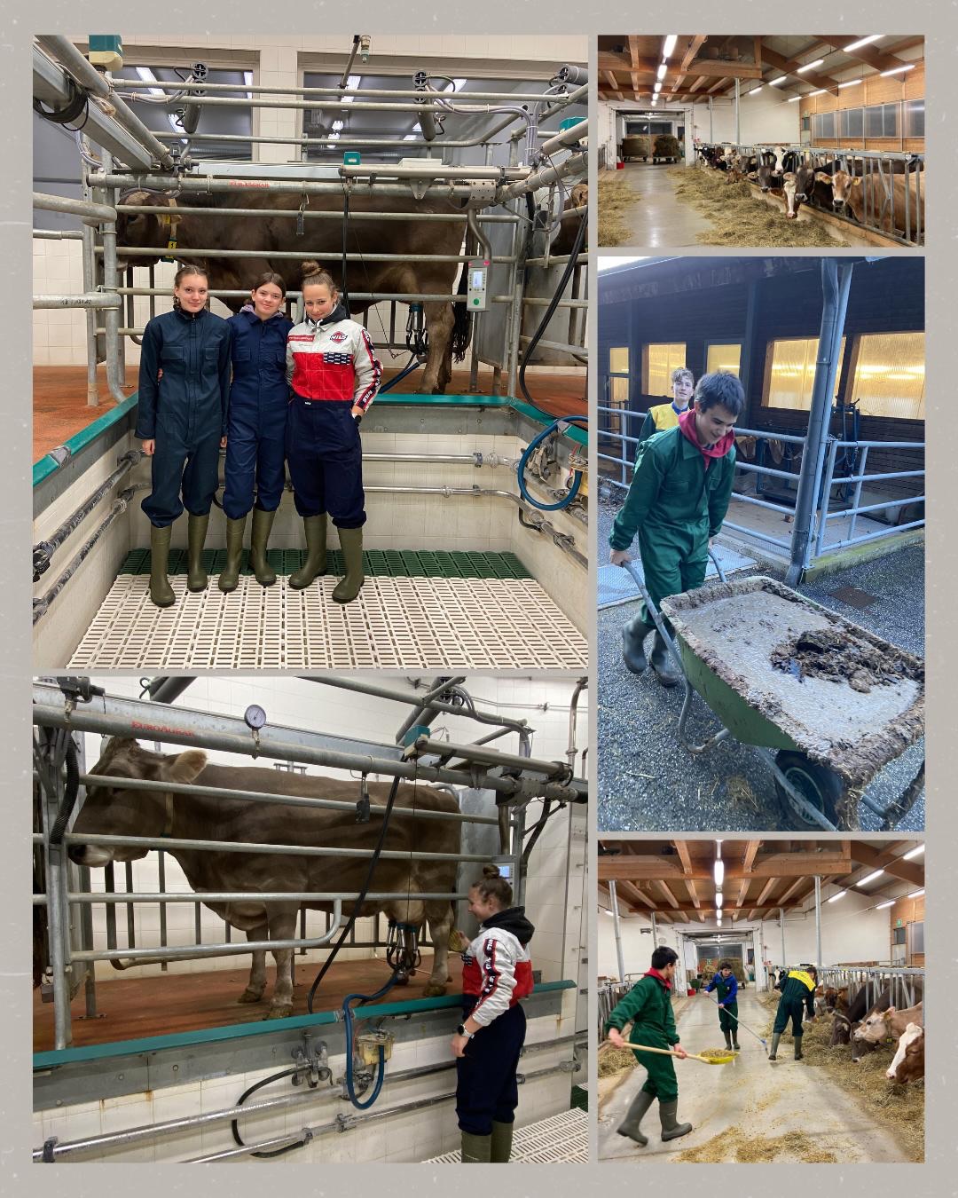 Zu den täglichen Arbeiten zählen das Ausmisten der Ställe, das Füttern und Versorgen der Tiere sowie das Melken unserer Milchkühe. Die Schülerinnen und Schüler erhalten Einblicke in die Mutterkuhhaltung und kümmern sich um Schweine, Ziegen, Schafe, Kälber und Rinder.