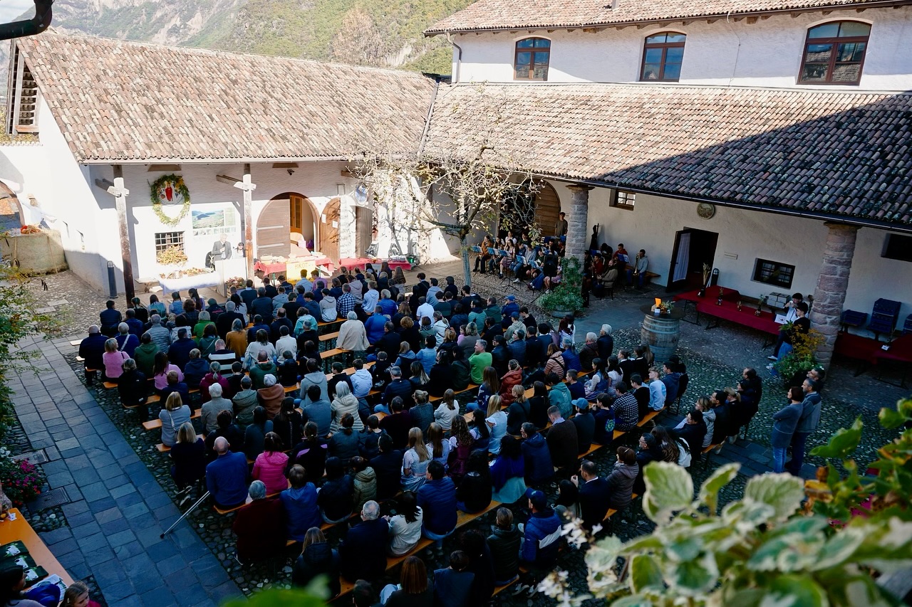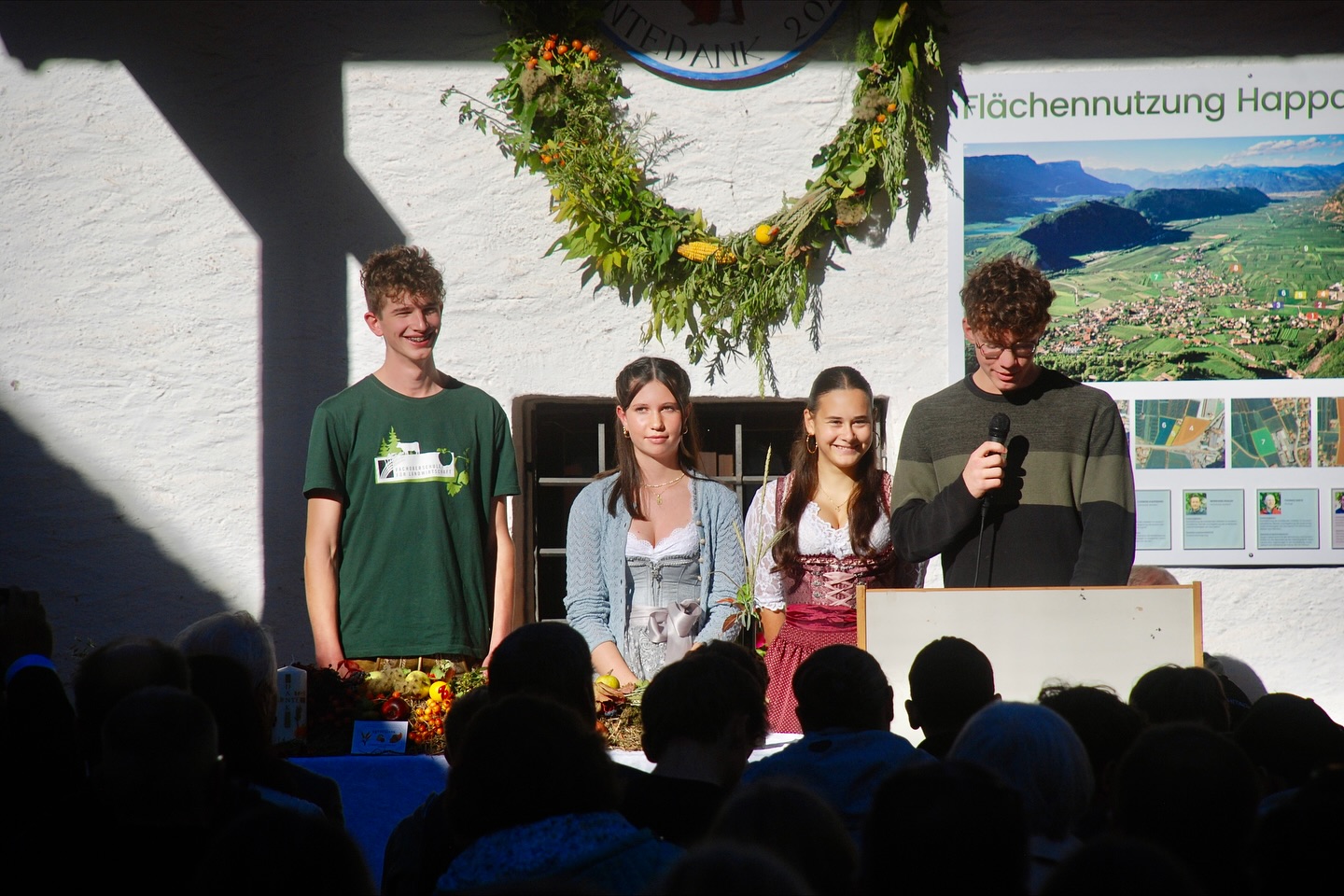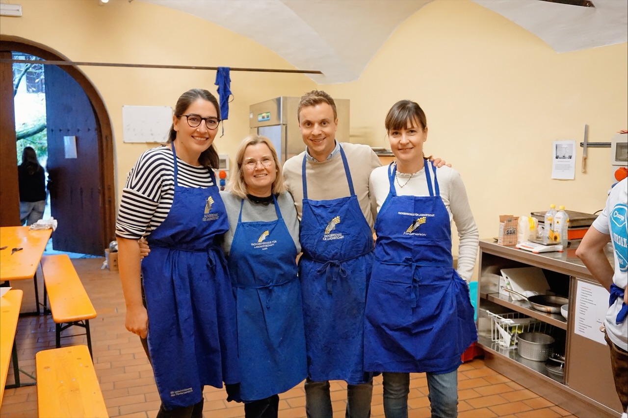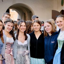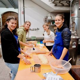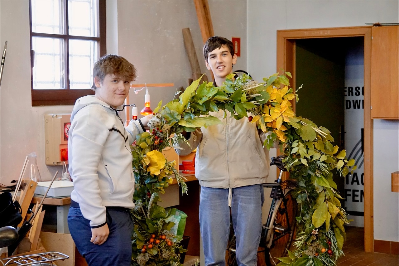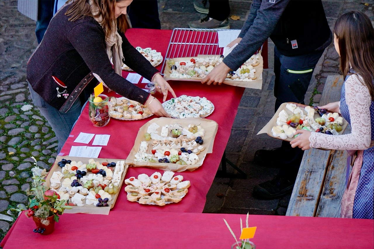Bei strahlend blauem Himmel feierte die OFL am Freitag, den 24. Oktober, ihr 23. Erntedankfest. Für die Schüler:innen der 2. Klassen war das eine willkommene Abwechslung. In verschiedenen Gruppen wurden Krapfen gebacken, Wurst mit Plent zubereitet, Käse- und Apfelgerichte angeboten, Knödel und Suppen gekocht, frisches Brot gebacken und feine Kastanienköstlichkeiten serviert. Auch eine eigene Dekogruppe war mit viel Kreativität und Liebe zum Detail im Einsatz. Sie schmückte den Innenhof und sorgte so für eine stimmungsvolle Atmosphäre.