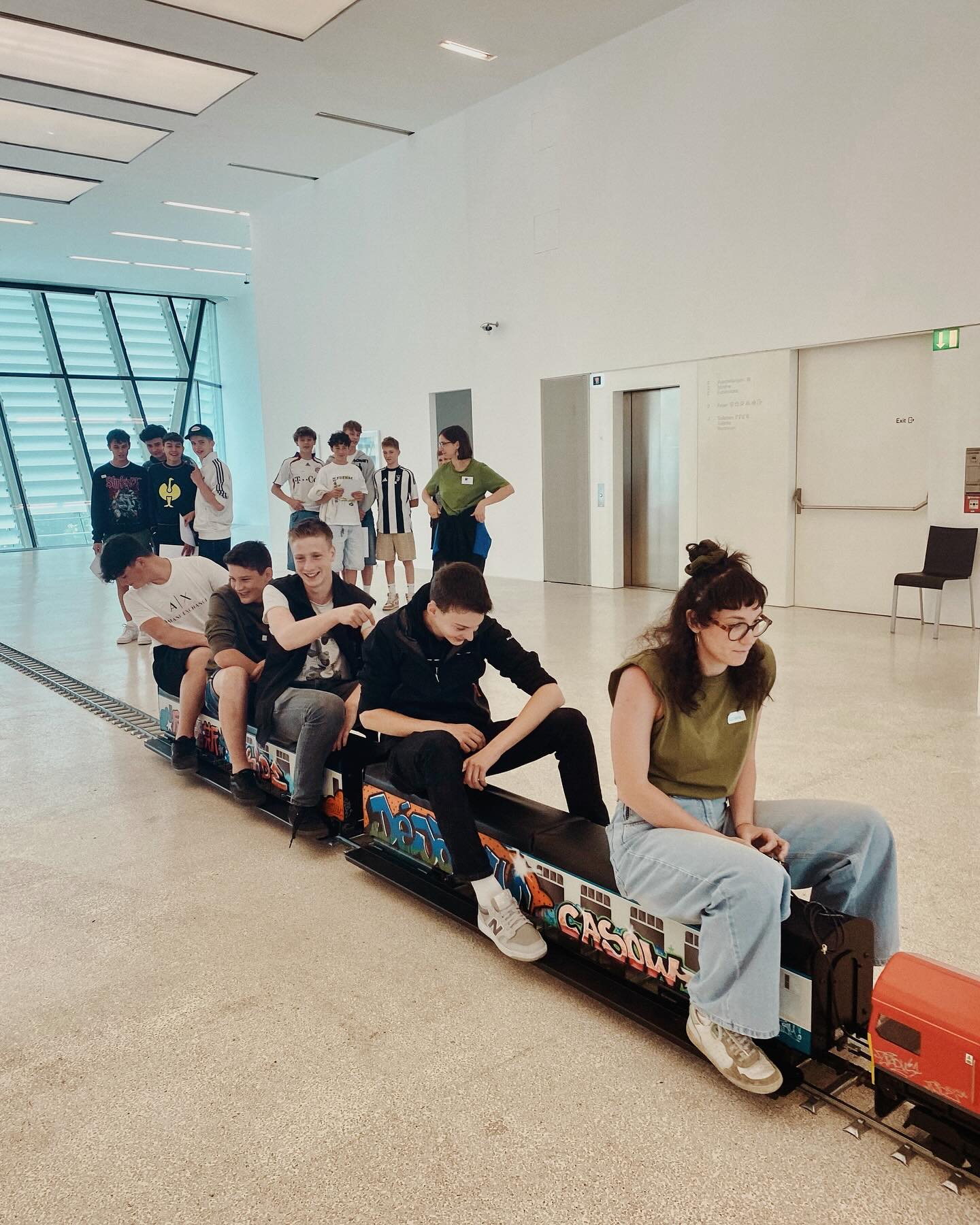 Last Wednesday, two first-year classes, 1A and 1E, embarked on an exciting trip to Bolzano to visit the Contemporary Art Museum Museion as part of a multilingual project. The students had the opportunity to immerse themselves in the vibrant world of graffiti by exploring the current exhibition. Guided by experts, they reflected on several striking artworks, all while expanding their English vocabulary.