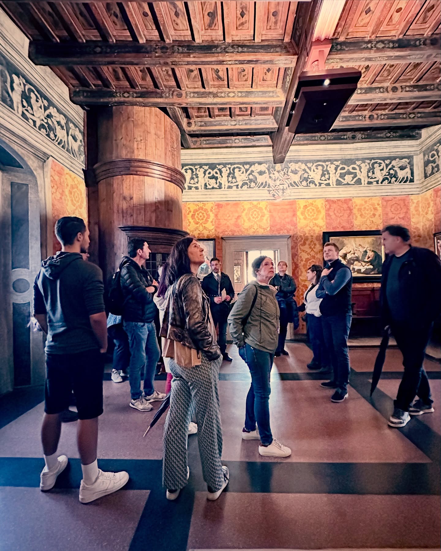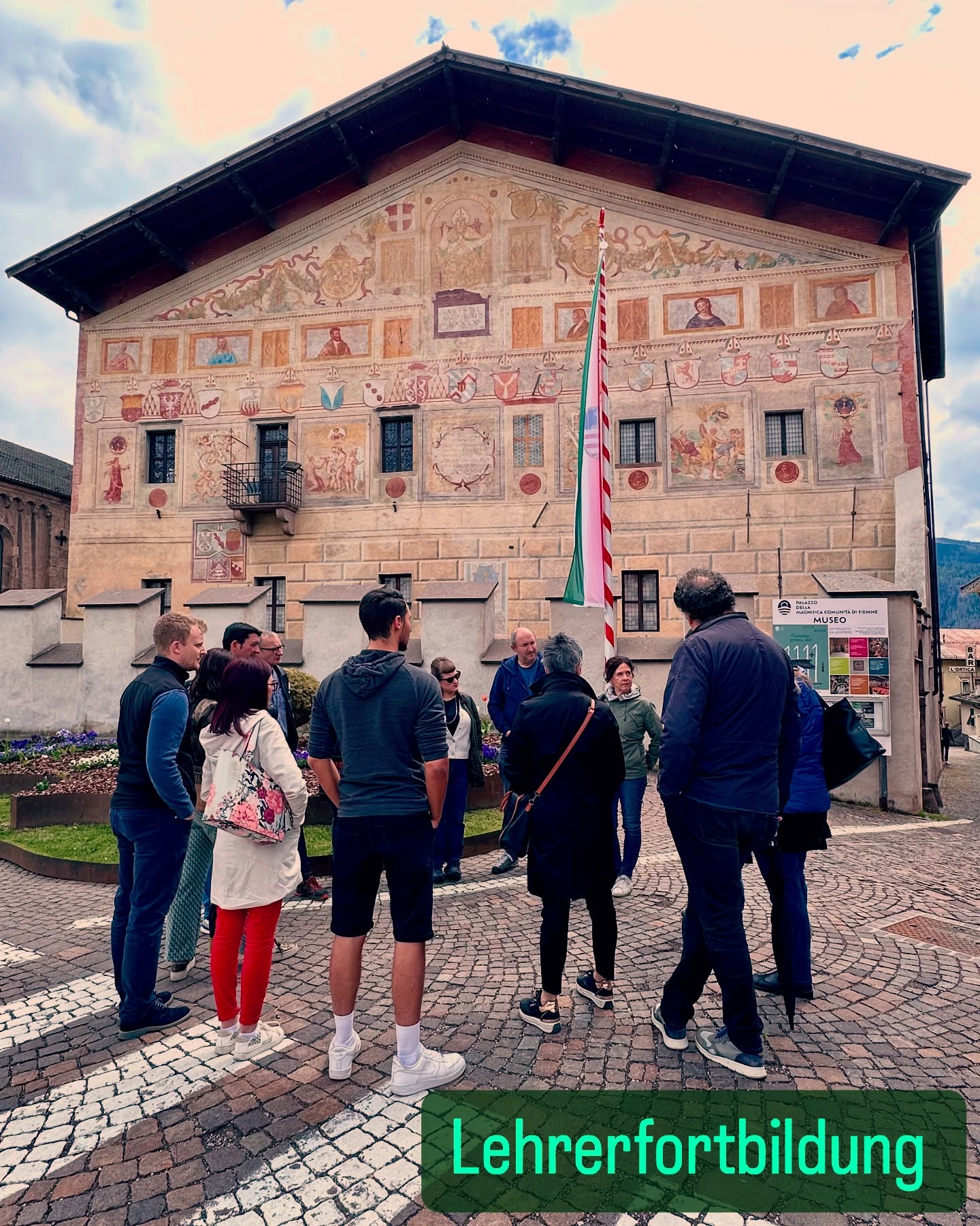 Die Lehrerfortbildung begann mit einem Besuch der Magnifica Comunità di Fiemme, wo die Teilnehmer:innen Einblicke in die historische Bedeutung und die Struktur der Gemeinschaft erhielten.