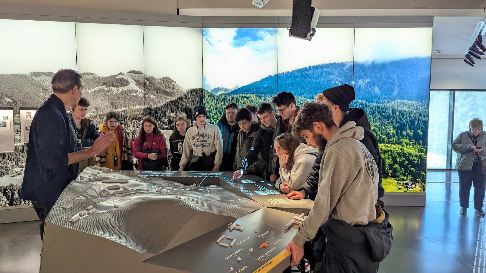 Erstes Ziel der Lehrfahrt war das Dokumentationszentrum Obersalzberg. Das Dokumentationszentrum bietet eine umfassende Ausstellung zur Geschichte des Obersalzbergs, der während der NS-Zeit als Rückzugsort und Machtzentrum Adolf Hitlers diente. Die Schülerinnen und Schüler hatten die Gelegenheit, die Dauerausstellung "Idylle und Verbrechen" zu besichtigen, die die Verbrechen des Nationalsozialismus und deren Auswirkungen auf die Region Berchtesgaden darstellt.